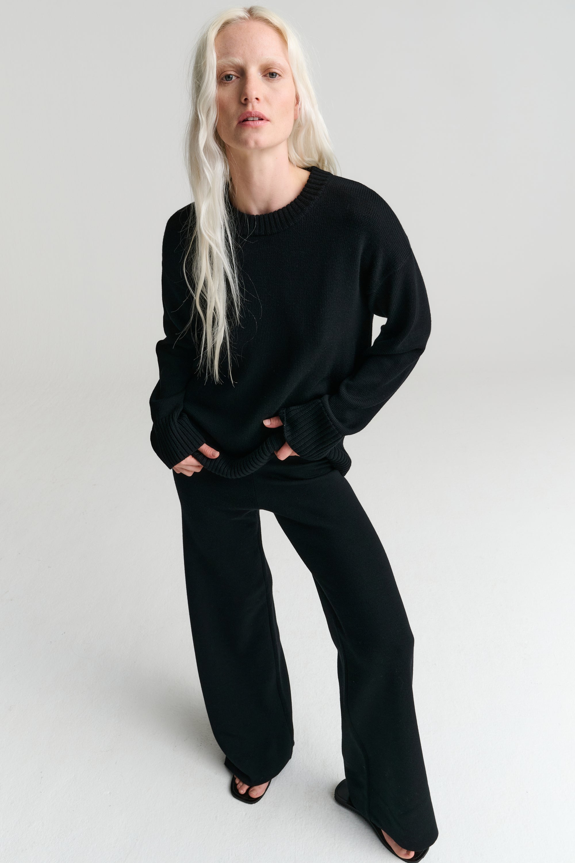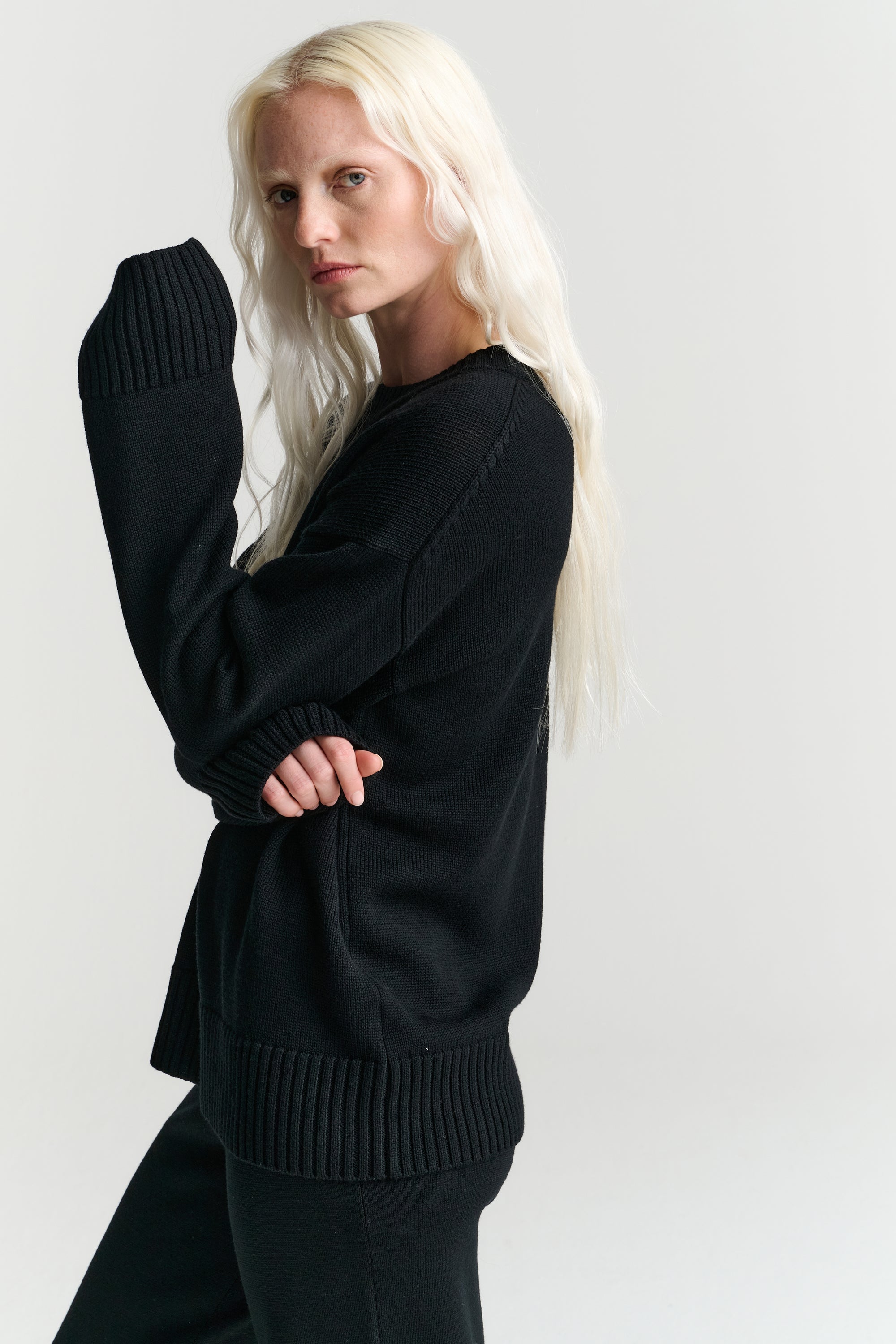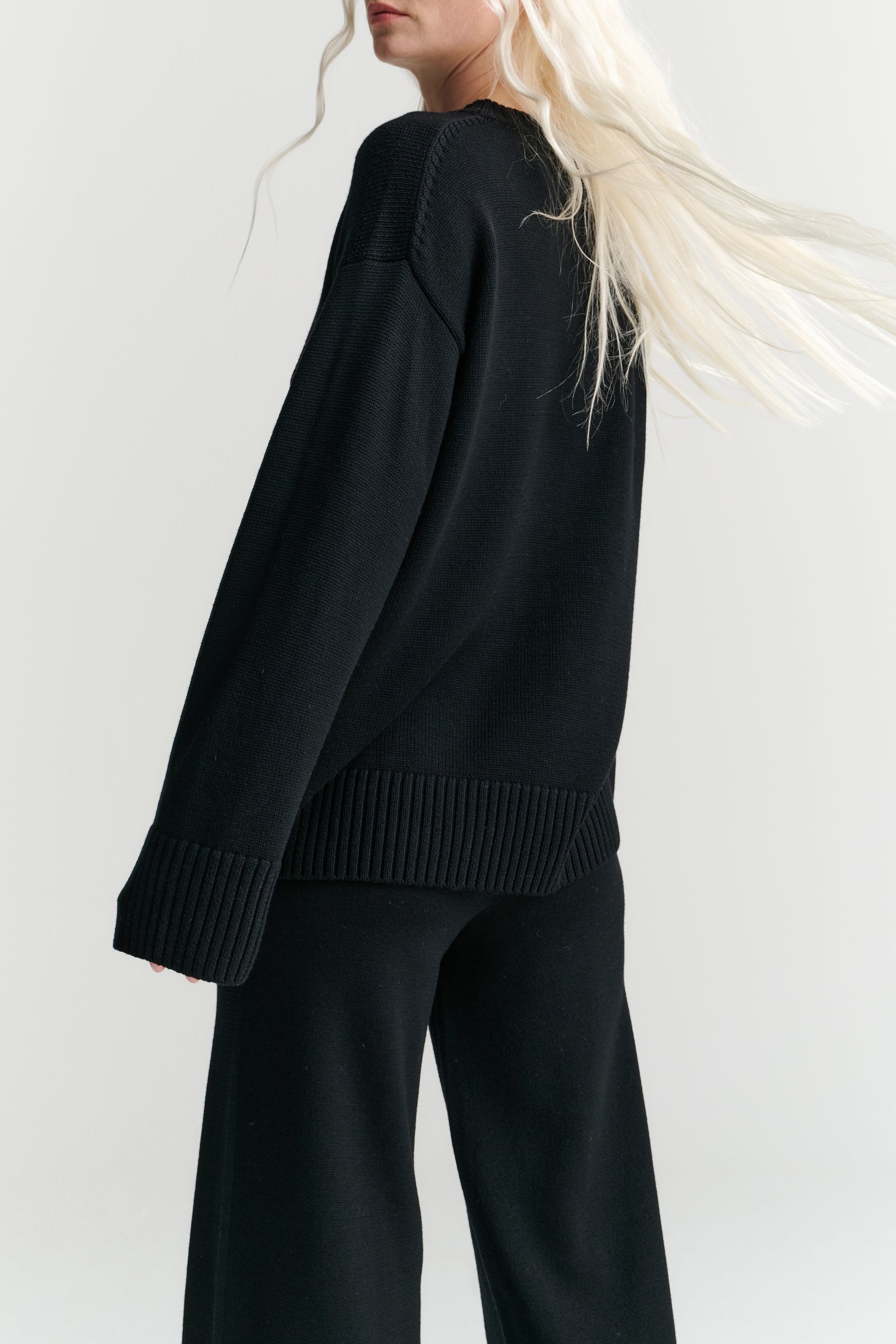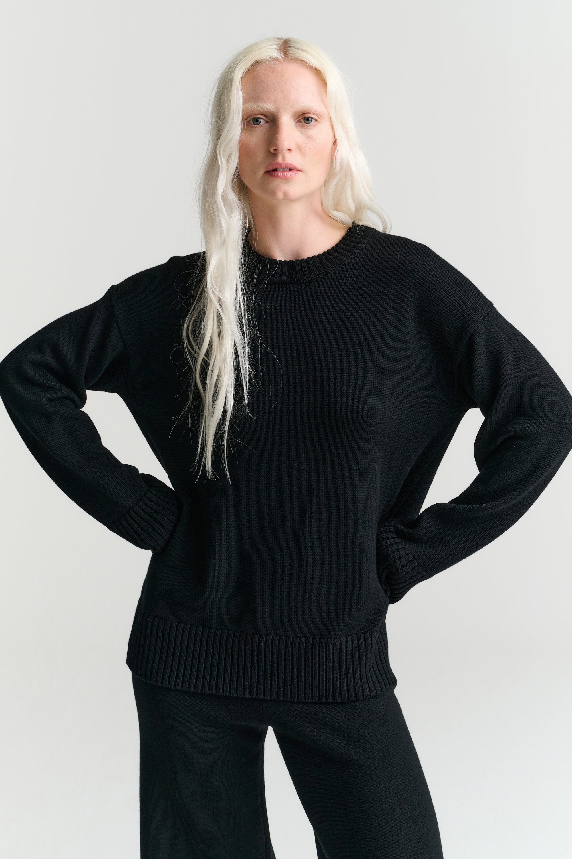 The black Crew is the ultimate winter wardrobe staple. This perfect basic has a relaxed fit and is knitted from our signature Merino Wool, the hand feel is of uncompromised quality which elevates the softness, breathability, and longevity of this sweater.